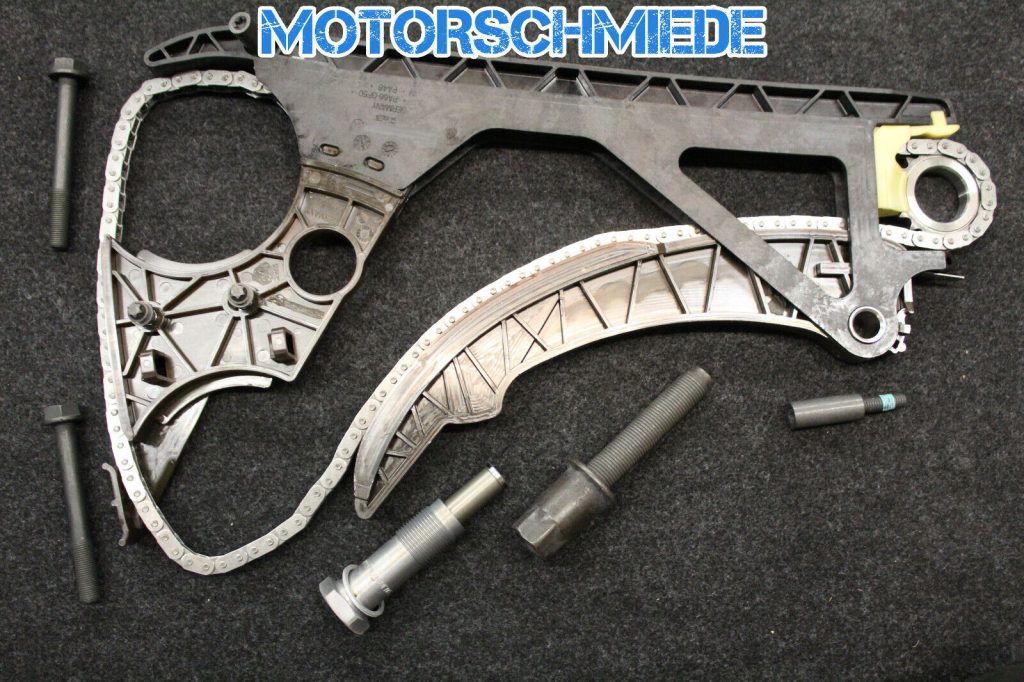 - Sämtliche Steuerketten, der Kettenspanner, die Gleit- bzw. Spannschienen, Ventilschaftdichtungen, Kolbenringe, Kurbelwellenhauptlagerschalen, Pleuellagerschalen, Zylinderkopfdichtung, Zylinderkopfschrauben, Steuergehäusedeckeldichtung und Radialwellendichtringe wurden erneuert